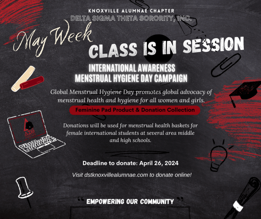 Anyone can donate! Donations will be used for menstrual health baskets for female international students at Knoxville area middle & high schools.