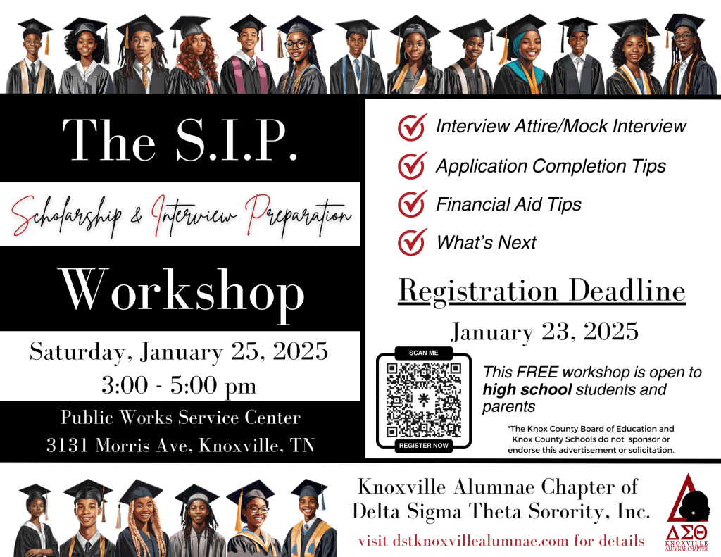 Join the Knoxville Alumnae Chapter of Delta Sigma Theta Sorority, Inc. for The S.I.P.: Scholarship & Interview Preparation Workshop